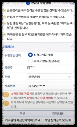 - 환급금 수령방법을 선택합니다. 반드시 본인 명의의 계좌만 가능합니다. 현금수령은 우체국방문 현금수령을 선택하시면 됩니다.