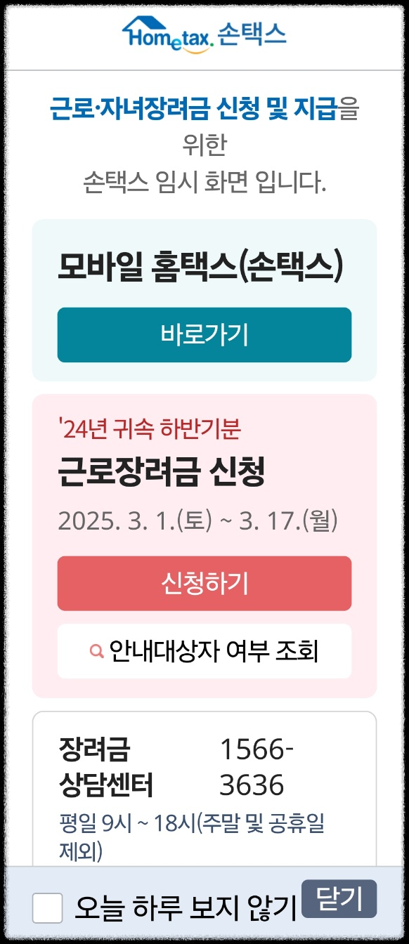 - 24년 하반기 소득 : 25년 3월 1일~17일 - 근로소득만 있는 근로소득자가 신청할 수 있습니다.