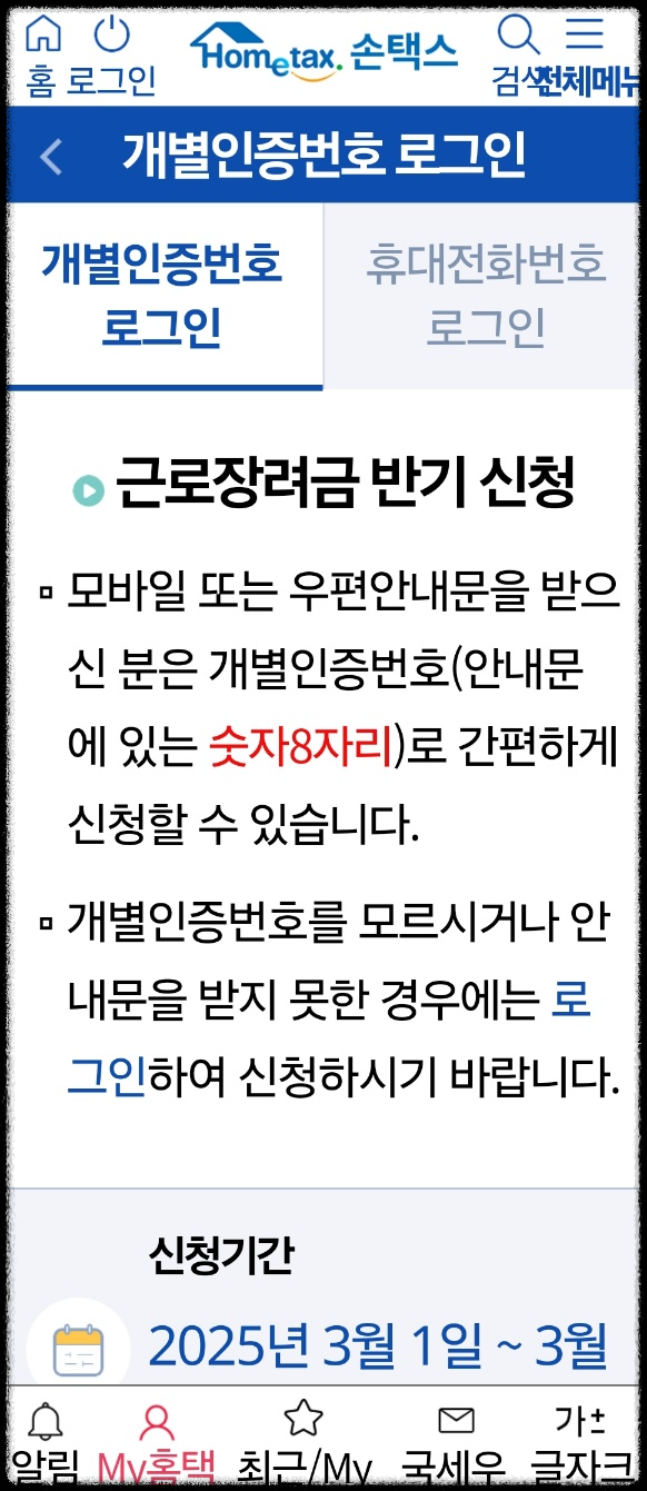 이 경우는 모바일이나 PC 홈택스를 통해 직접 신청할 수 있습니다. 이글에서는 모바일로 신청하는 방법을 알아보겠습니다.