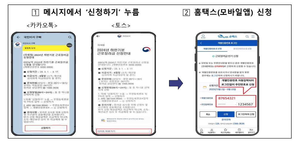 - 국민비서 정부 제공 알림 메시지를 카카오톡, 토스등을 통해받은 경우: 모바일 안내문에서 바로 신청 가능
