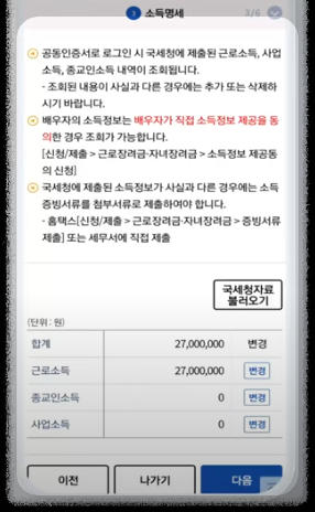 - 소득금액 입력시 국세청에 신고된 소득자료가 실제소득과 다르다면 정정이 가능하며, 이경우 해당 소득을 입증할 수 있는 증빙자료를 같이 제출해 주셔야 합니다.