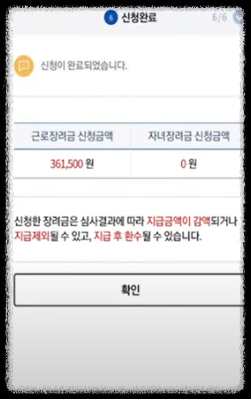 - 신청이 완료되면 신청 금액을 확인할 수 있습니다. 심사결과에 따라 지급제외 되거나 감액될 수 있습니다. 심사결과는 심사진행상황 조회에서 확인할 수 있습니다.