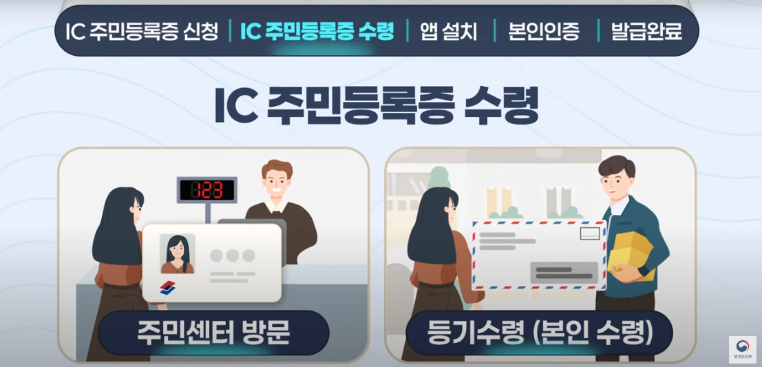 - 2주 뒤 다시 주민센터를 방문하거나 등기로 IC주민등록증을 수령해요.