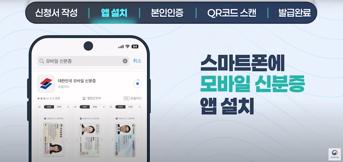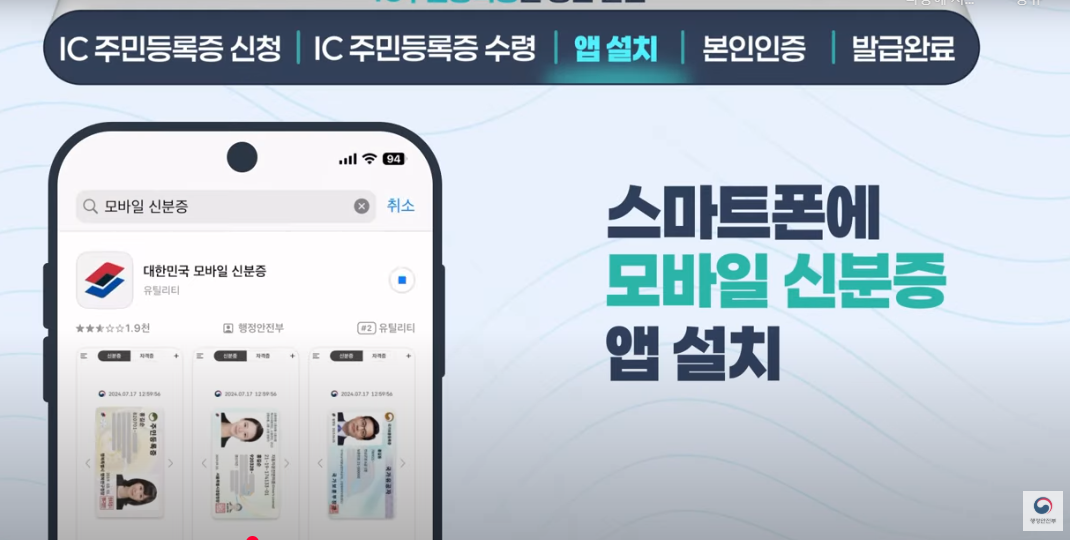 - 스마트폰에 대한민국 모바일 신분증 앱을 설치해요.