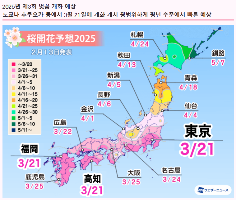 - ✅ 일본 야후 (Yahoo! Japan) - "2025桜" 검색 시 벚꽃 개화 예상 정보 제공