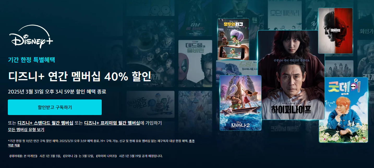 3월 19일이 기대됩니다. 마지막으로 디즈니+가 마침 할인 이벤트 중이라 소개드립니다.