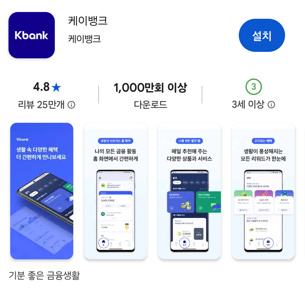 - 1. 플레이스토어에서 K뱅크 앱 설치하기